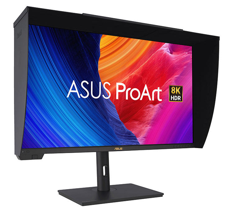 ProArt Display PA32KCX front view to the right with hood1 - ASUS ProArt Display 8K PA32KCX