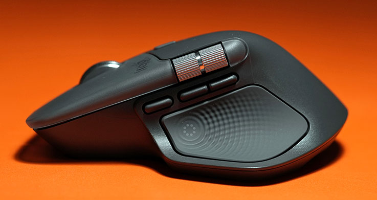MX Master mouse’larda sevdiğim bir özellik, MagSpeed Scroll Tekerleği. İnanılmaz bir hızla saniyede 1000 satıra kadar kaydırma yapabiliyor ve istendiğinde kademeli moda geçebiliyor. Hatta piksel piksel hassas kaydırma yapmakta mümkün. MX Master 4, Logitech’in en hızlı, en sessiz ve en hassas kaydırma deneyimini sunan mouse’u olmuş. 4’te de aynı 3 ve 3S’te olduğu gibi alüminyum alaşımlı kaydırma tekerlekleri var. Önceki modellerde bu tekerleklerin üzerinde silikon benzeri bir malzeme vardı ve o kısımlarda aşınıyor, göze hoş görünmüyordu.